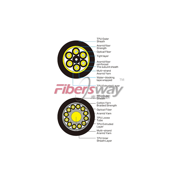 GJBFJZU (nonmetal strength, TPU sheath, there may be nylon yarn woven reinforced high-flexible optical cable) high-flexible optical cable has single sheath structure and double sheath structure;Single sheath structure is to make single-mode or multi-mode optical fiber coated with high viscosity strength tight case material into tight case optical fiber and use high- intensity aramid fiber to extrude and manufacture a layer of TPU sheath externally to make unit cable (may have filler) winding center strength and strand to make cable core, then extrude to manufacture TPU outer sheath to make cable.Single sheath structure is to make single-mode or multi-mode optical fiber coated with high viscosity strength tight case material into tight case optical fiber and use high-strength aramid fiber to extrude and manufacture a layer of TPU as inner sheath, reinforce the weaving of cotton yarn outside inner sheath and then extrude to manufacture TPU outer sheath to make cable.